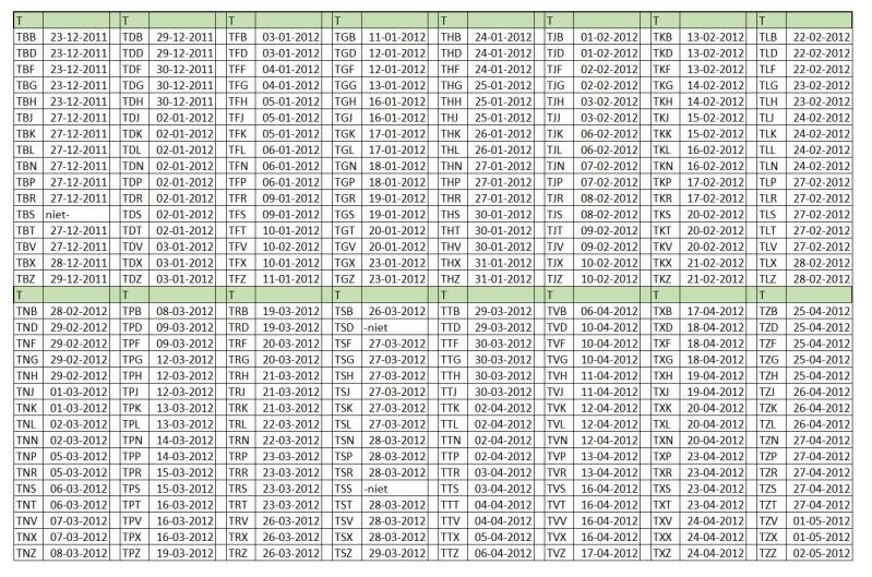 Kentekens T - 2011